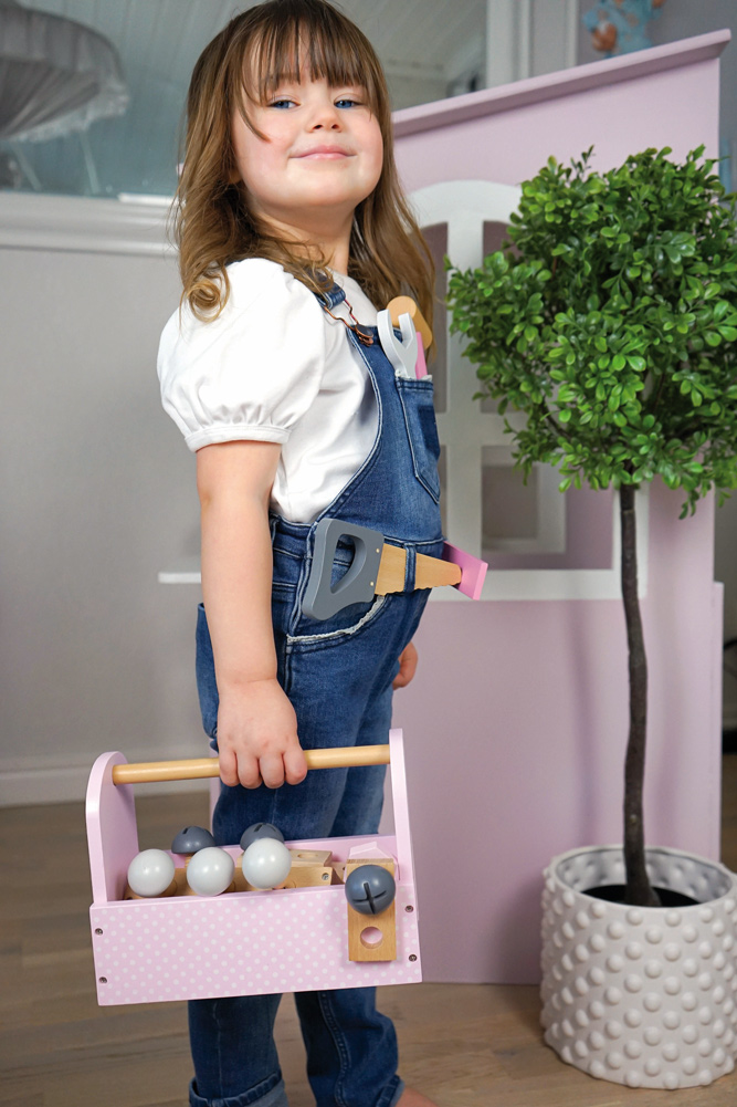 Jabadabado rozi drveni alat u kutiji- sjajan je za sve mališani koji vole da majstorišu po kući. Set se sadrži od 16 dijelova potrebnih svakom profesionalcu za popravke po kući. Mališani na ovaj način vježbaju koordinaciju, preciznost i snalažljivost uz maksimalnu zabavu.