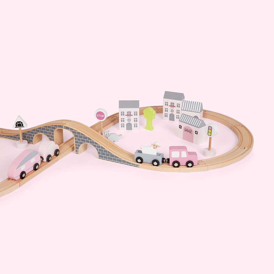 Drvena pruga i auta dio su ovog velikog seta, koji se sastoji od 37 različitih dijelova i idealan je poklon za vaše najdraže. Pomozite im da sagrade svoj drveni svijet i započnu avanturu po ulicama njihovog grada.